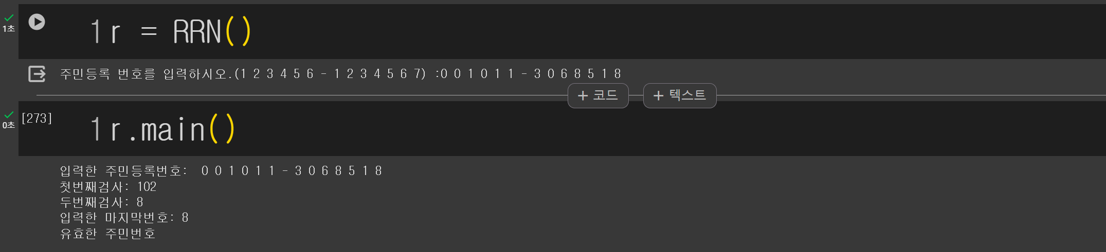 - 결과값이 마지막 주민등록번호와 일치하면 유효한 주민번호