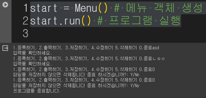 def run(self): # 메뉴