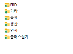 ['클래스설계', '인사', '물류', '생산', 'ERD', '기타']