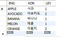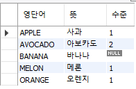 INSERT INTO WORDS VALUES ('BANANA', '바나나', null); # NULL이 들어감