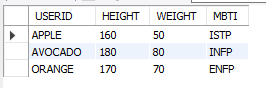 -- INSERT INTO PROFILE VALUES ('GRAPES', 170, 70, 'ESTP'); # 에러 MEMBER에 없는 데이터