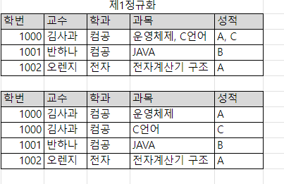 - 데이터를 변경, 삽입, 삭제할 때 원하지 않게 데이터가 삭제되거나 가공되는 일이 발생할 수 있음(이상현상)