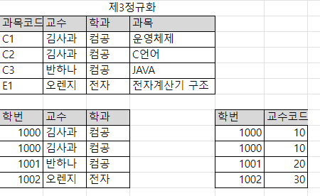 - 조직화되어 있지 않은 테이블과 관계들을 조직화된 테이블과 관계들로 나누는것