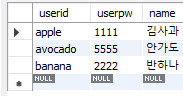 ('apple', '1111', '김사과', '010-1111-1111', 'apple@apple.com', '여자', '001011', '4015111');