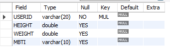 | regdate | datetime | YES | CURRENT_TIMESTAMP | DEFAULT_GENERATED | |