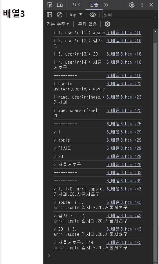 // for in 배열
