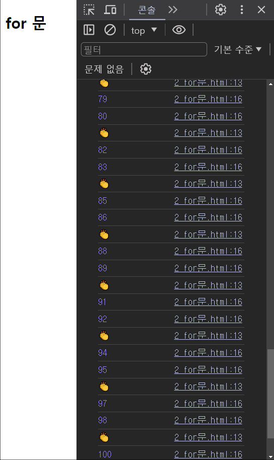 console.log('for문')