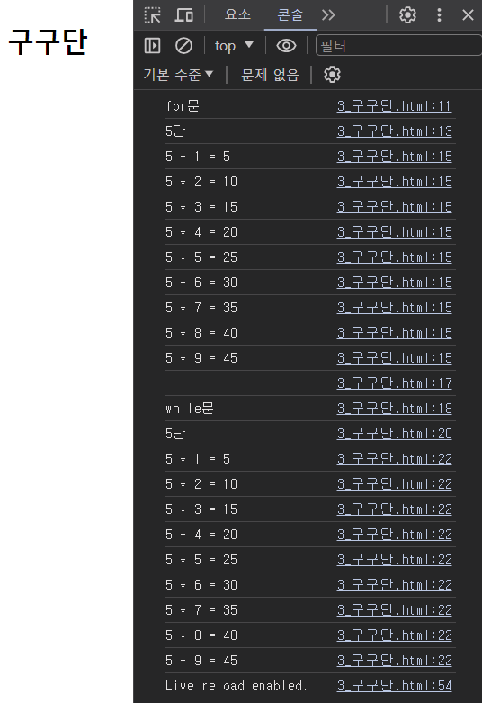 console.log('while문')