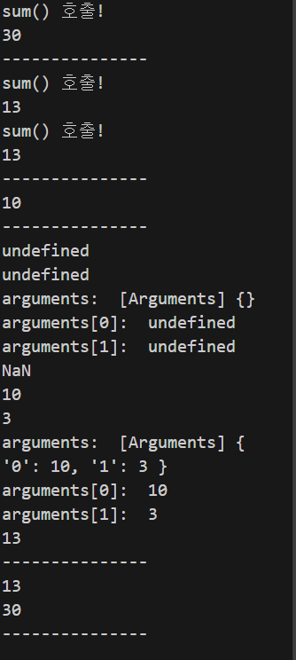 // arguments: 함수의 전달된 인수에 해당하는 값을 array 형태의 객체로 반환